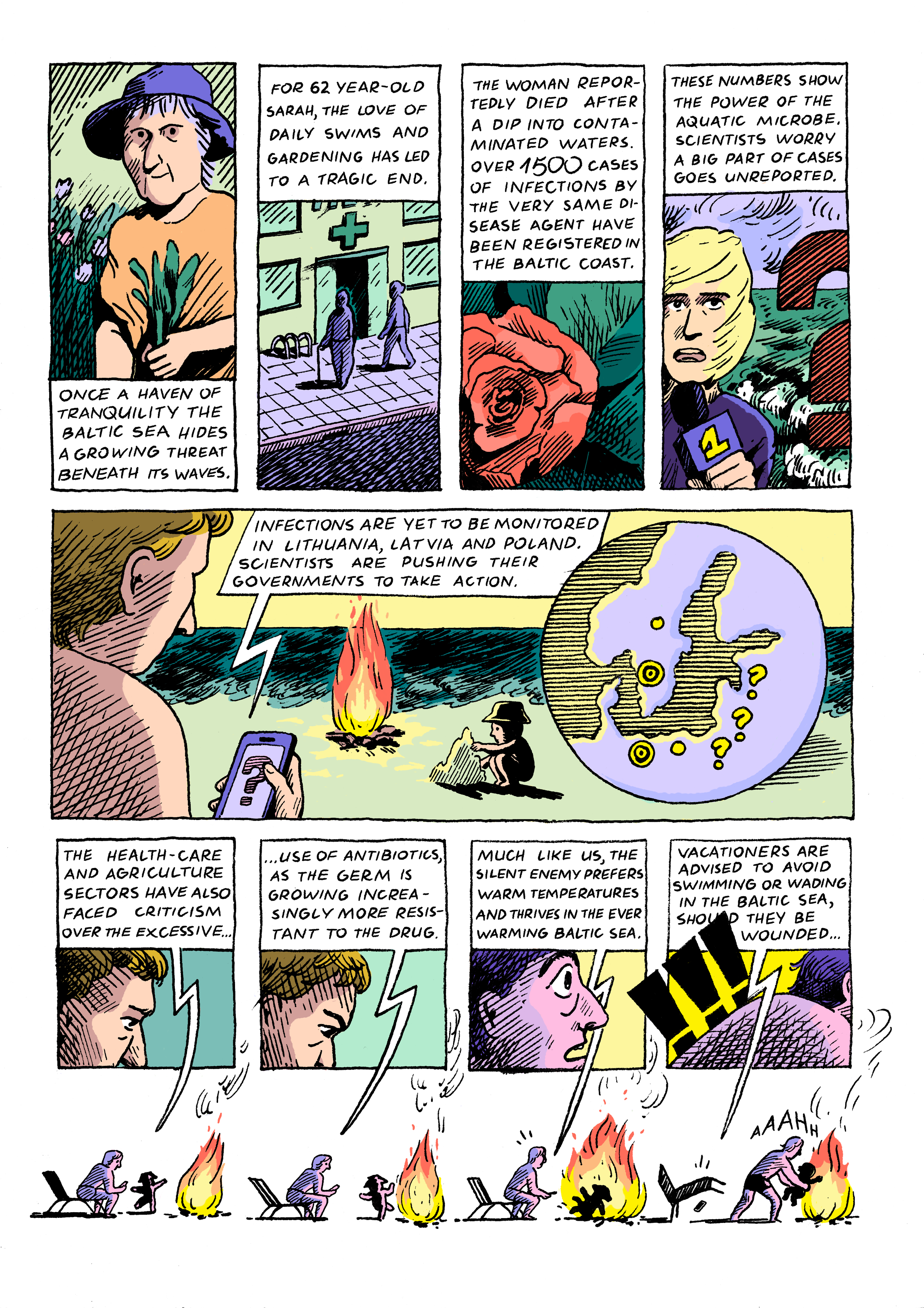 The project promotes nine research projects - one at each partner university - addressing coastal sustainability through a wide range of scientific disciplines, from social sciences to fundamental research. Each PhD student and researcher have been paired up with an artist from their country and their research project transposed into a 3 pages comic with a cover illustration.